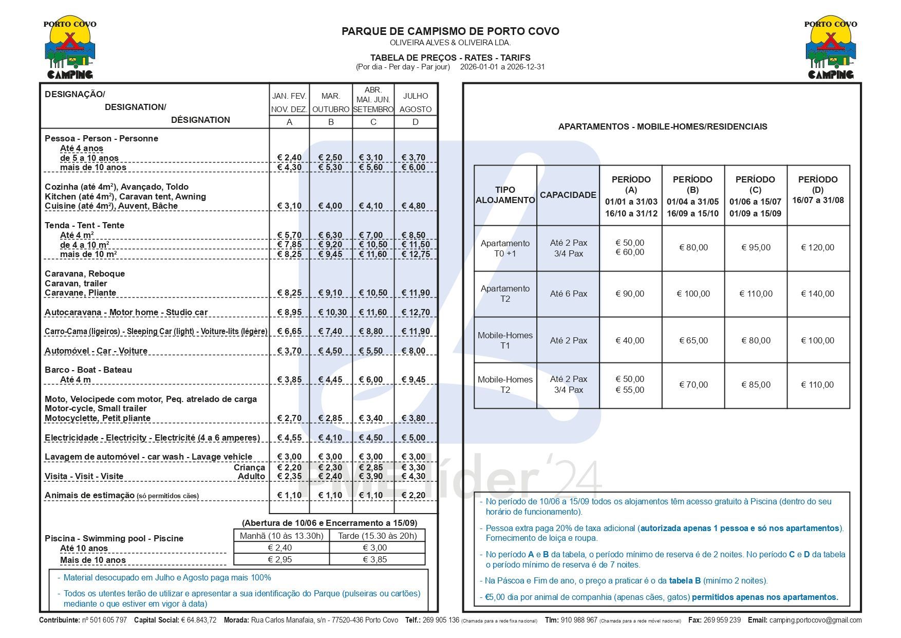 Morada: Rua Carlos Manafaia s/n 7520-436 Porto Covo Portugal